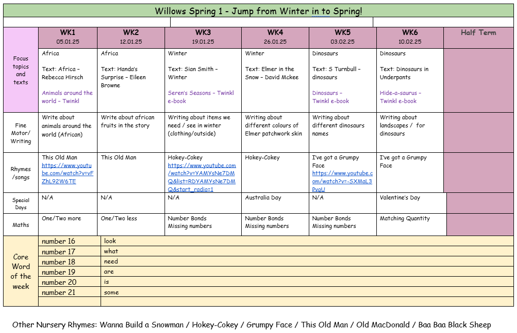 Below is our Half Termly Overview showing you Willows curriculum coverage.